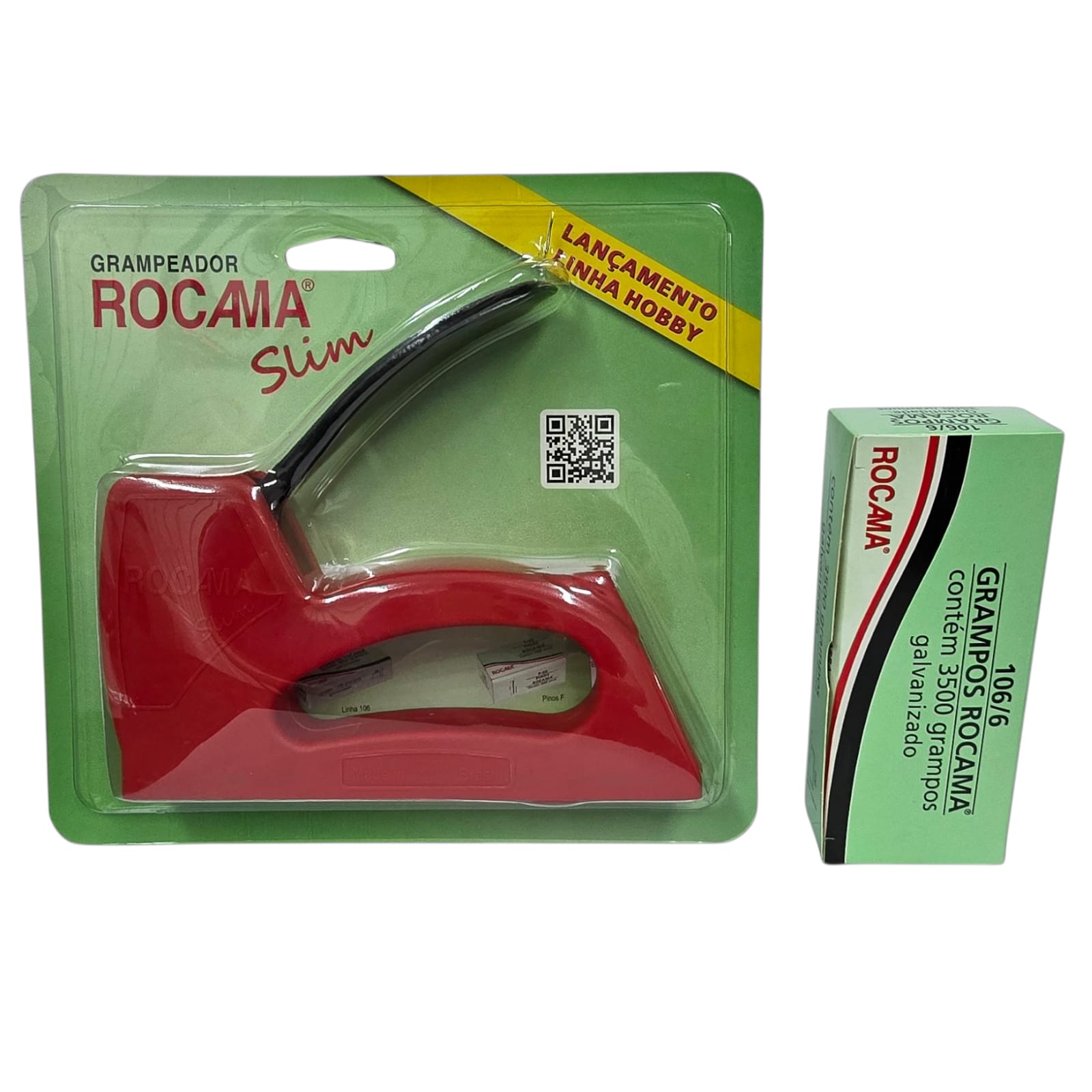 Contém:1 Grampeador premium Rocama Modelo 1061 Caixa de grampos galvanizado Rocama, modelo 106/6 com 3500 grampo