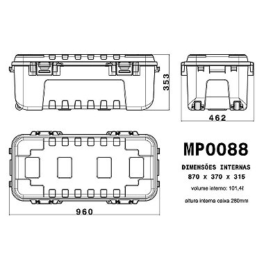 - Dimensões internas: 870x370x315 (mm)